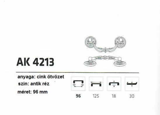 BÚTORFOGANTYÚ DISZES 96MM ANTIKOLT RÉZ AK4213
